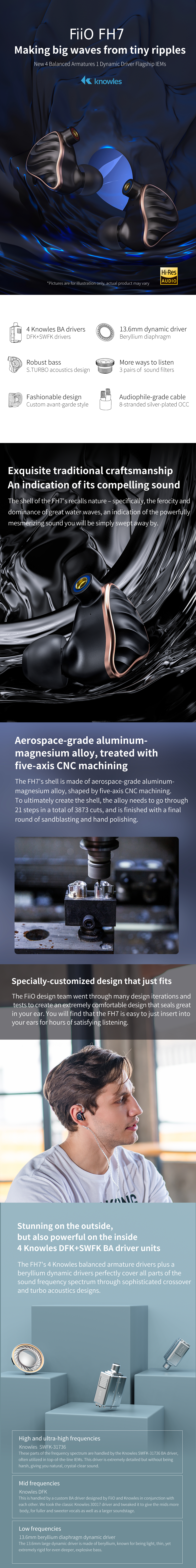 FiiO FH7 New 4 BA 1 Dynamic Driver Flagship IEMs.